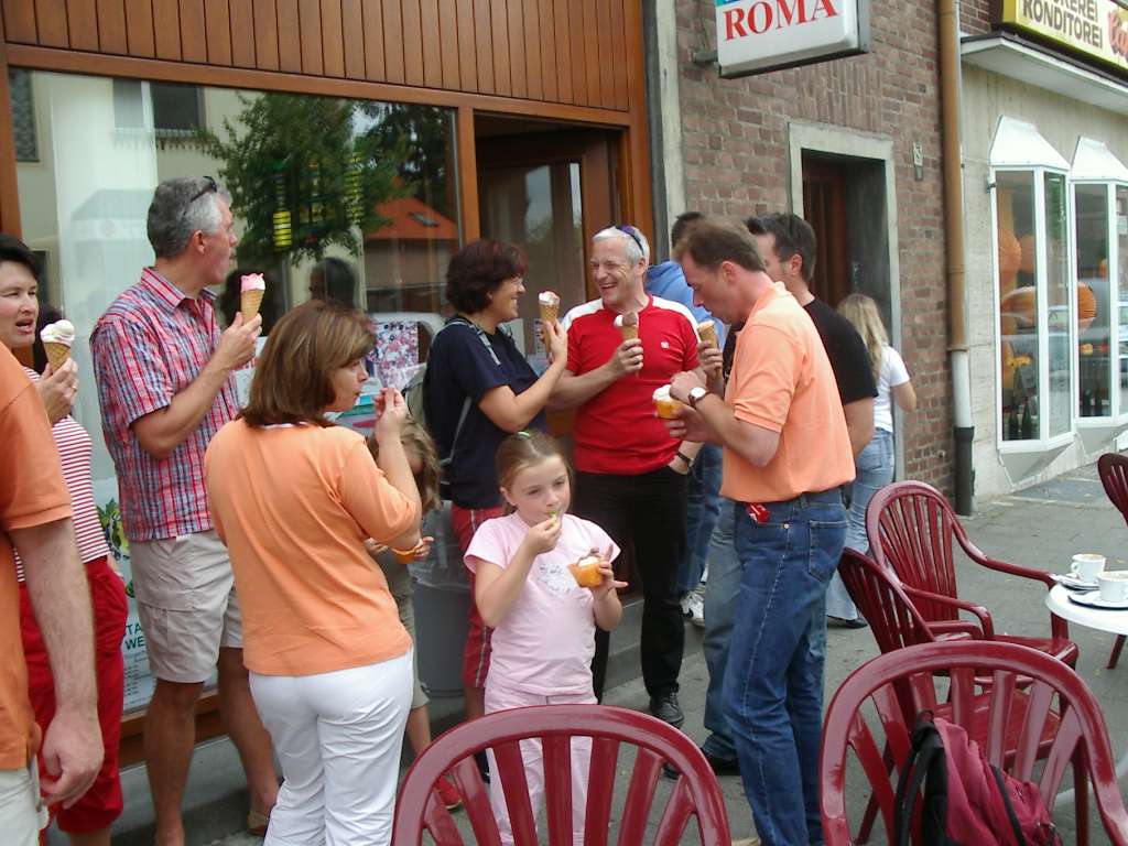 Erst ging es mit den Rädern mit den Familien entlang der Sophienhöhe nach Niederzier, zum Eis-Cafe. Dann wieder zurück bis zur Residenz unseres Präsidenten. In deren Parkanlagen wurde dann gegrillt und mit den Kindern über Nacht gezeltet...