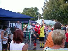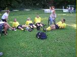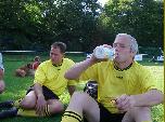 Vom 2. Bis 4. September fand das alljährliche Fussballturnier „Unser Dorf spielt Fussball", ausgerichtet von Grün-Weiß Welldorf, statt. „Traditionsgemäß" gewann die Mannschaft des RSC auch dieses Jahr, nach 2002 und 2004 zum dritten Mal das Turnier! Leider war das Turnier geprägt durch die Nichtteilnahme von Vereinen und kurzfristigen Absagen. Der Turnierplan wurde durcheinander gewirbelt. In der Vorrunde hatte die RSC-Truppe nur ein Spiel, welches mit 8:1 deutlich gegen den Tennis-Club gewonnen wurde. Im Halbfinale stieß man auf die „Streetboyz", eine junge, aber starke Mannschaft. Mit einem 2:1 Sieg zog der RSC ins Finale ein. Hier stieß man auf einen der wenigen teilnehmenden Ortsvereine, den Maiclub. Mit 3:1 konnte dieses Spiel gewonnen werden. Anders als in den Vorjahren wurde das Spiel der RSC-Mannschaft nicht nur von den „erfahrenen" Spielern geprägt, sondern auch besonders vom Nachwuchs. Das wöchentliche Training zeigte seine Wirkung. Ein paar Fotos: |